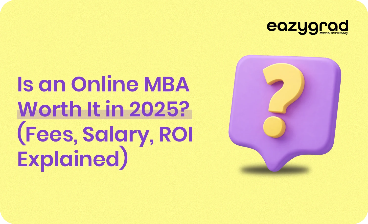 An Online MBA in 2025 is a strong and future ready investment for working professionals and students. With a flexible learning curve and industry oriented curriculum, global exposure and high return on investment it offers a perfect balance of quality and credibility. So if you are someone planning to pursue an online MBA to uplift your career with expert guidance on selecting a right program tailored to your need then EasyGrad can guide you to find the best fit with end to end counseling and support.