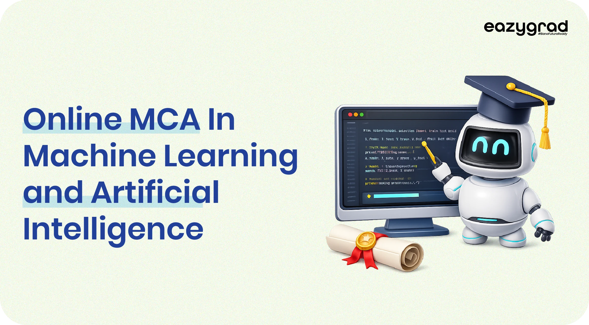 At EazyGrad, our mission is simple: “Bano Future Ready.” This program aligns perfectly with that mission by helping learners develop deep expertise in machine learning algorithms, neural networks, NLP, cloud computing, data engineering, reinforcement learning, and real-world AI applications. With the rise of online MCA In Artificial Intelligence and Machine Learning courses in India, students now have the convenience of accessing premium education, hands-on projects, and advanced tools directly from home while progressing professionally.